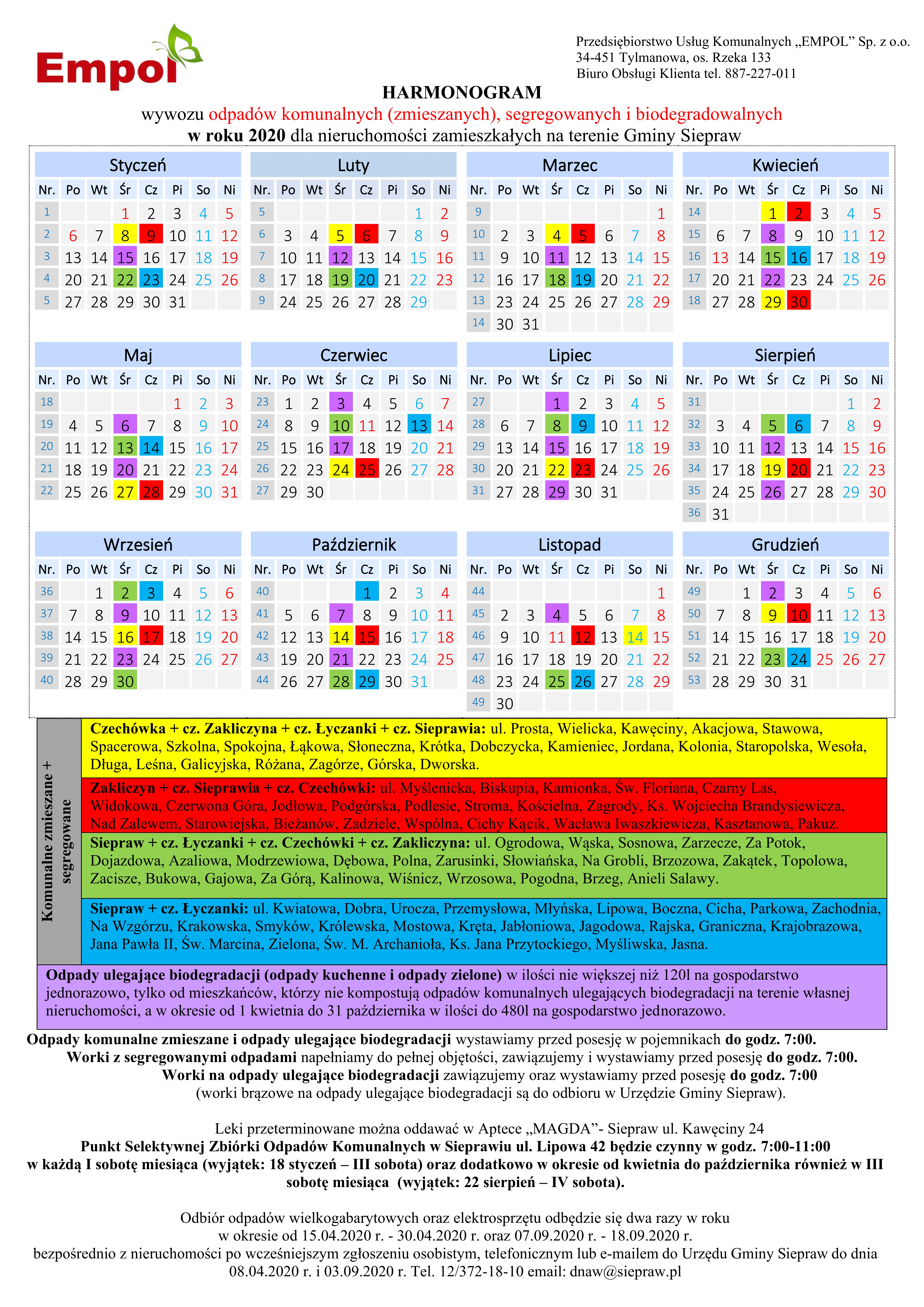 • Harmonogram odbioru odpadów w 2020 roku /