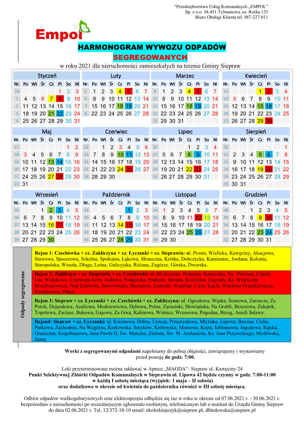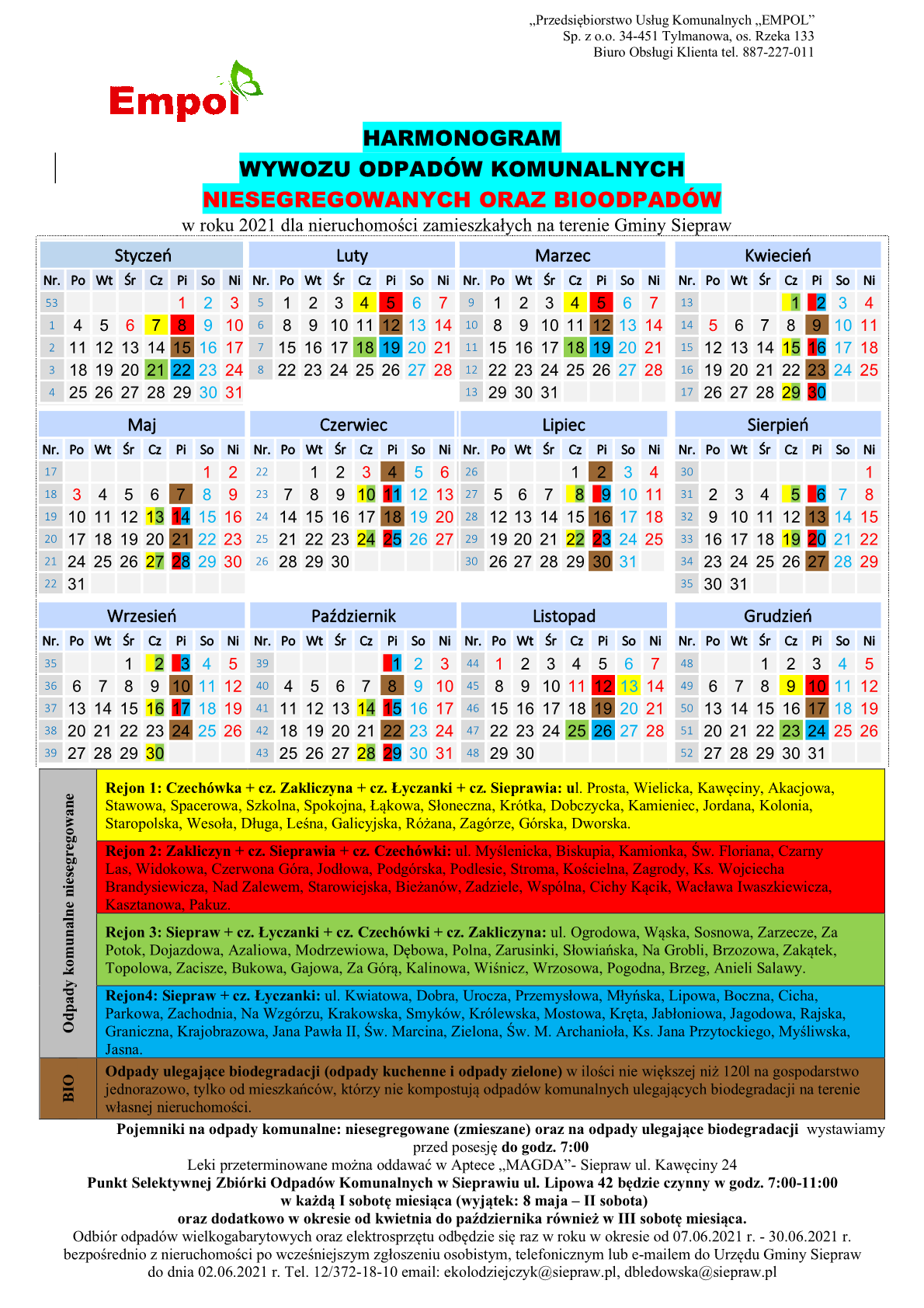Harmonogramy zostaną dostarczone mieszkańcom, prze firmę "EMPOL", w najbliższych dniach.
