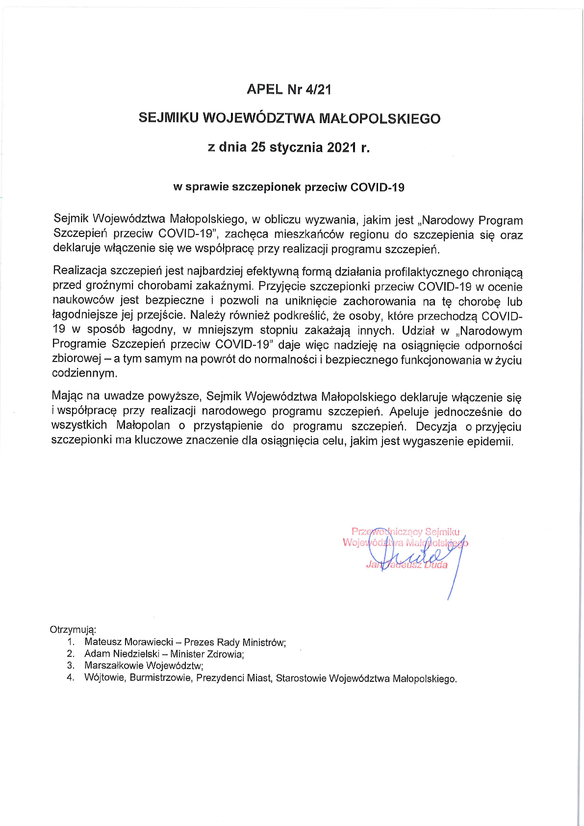 Województwa Małopolskiego w sprawie szczepionek przeciw