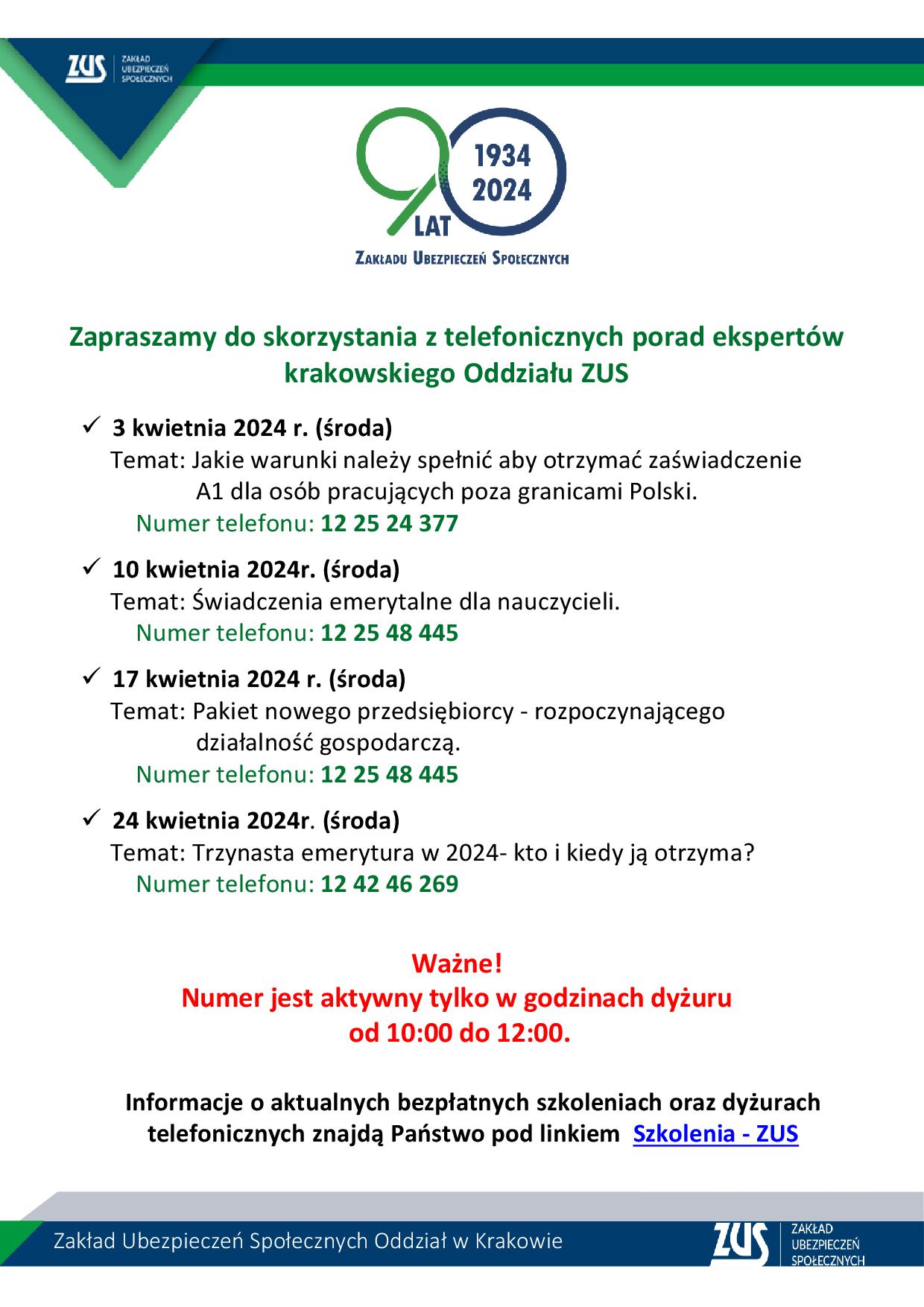 • Dyżur telefoniczny eksperta ZUS 27.03.24 /