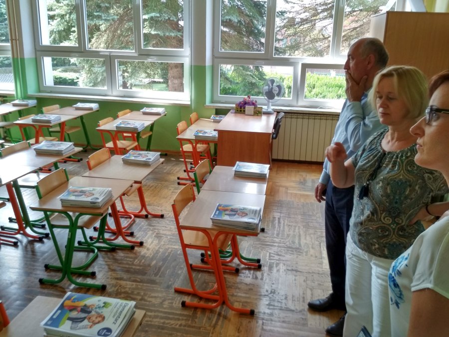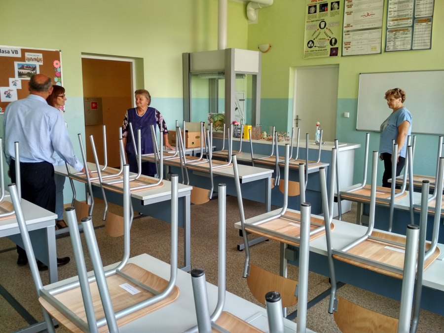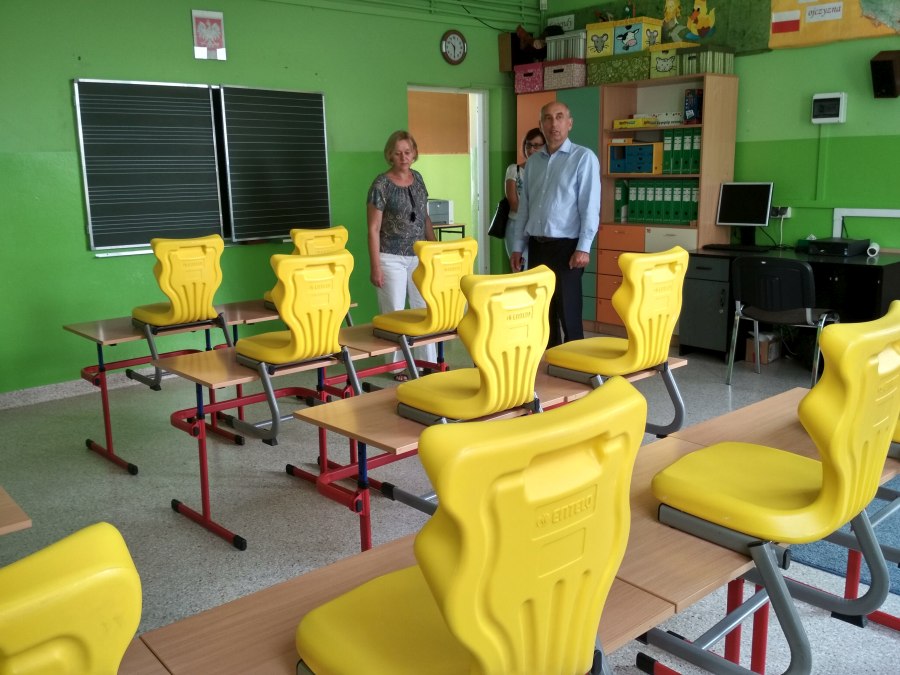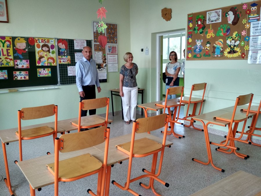 Jak co roku, pod koniec wakacji, Wójt Gminy Tadeusz Pitala wraz Kierownikiem Centrum Obsługi Szkół Jolantą Trzaską oraz Sekretarzem Michałem Baranem przy obecności dyrekcji i pracowników placówek oświatowych dokonali sprawdzenia przygotowania szkół podstawowych z terenu Gminy do nowego roku szkolnego.