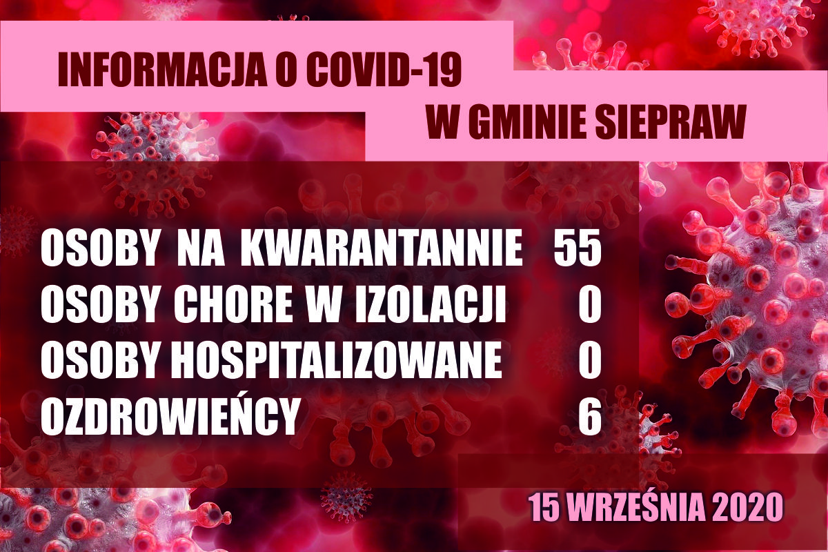 Informacja Państwowego Powiatowego Inspektora Sanitarnego w Myślenicach dotycząca ilości osób przebywających na kwarantannie, w izolacji, hospitalizowanych i ozdrowieńców w dniu 15 września 2020 r.