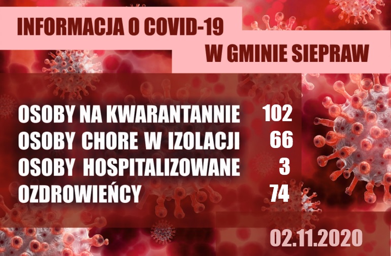 Informacja Państwowego Powiatowego Inspektora Sanitarnego w Myślenicach dotycząca ilości osób przebywających na kwarantannie, w izolacji, hospitalizowanych i ozdrowieńców w dniu 2 listopada 2020 r.