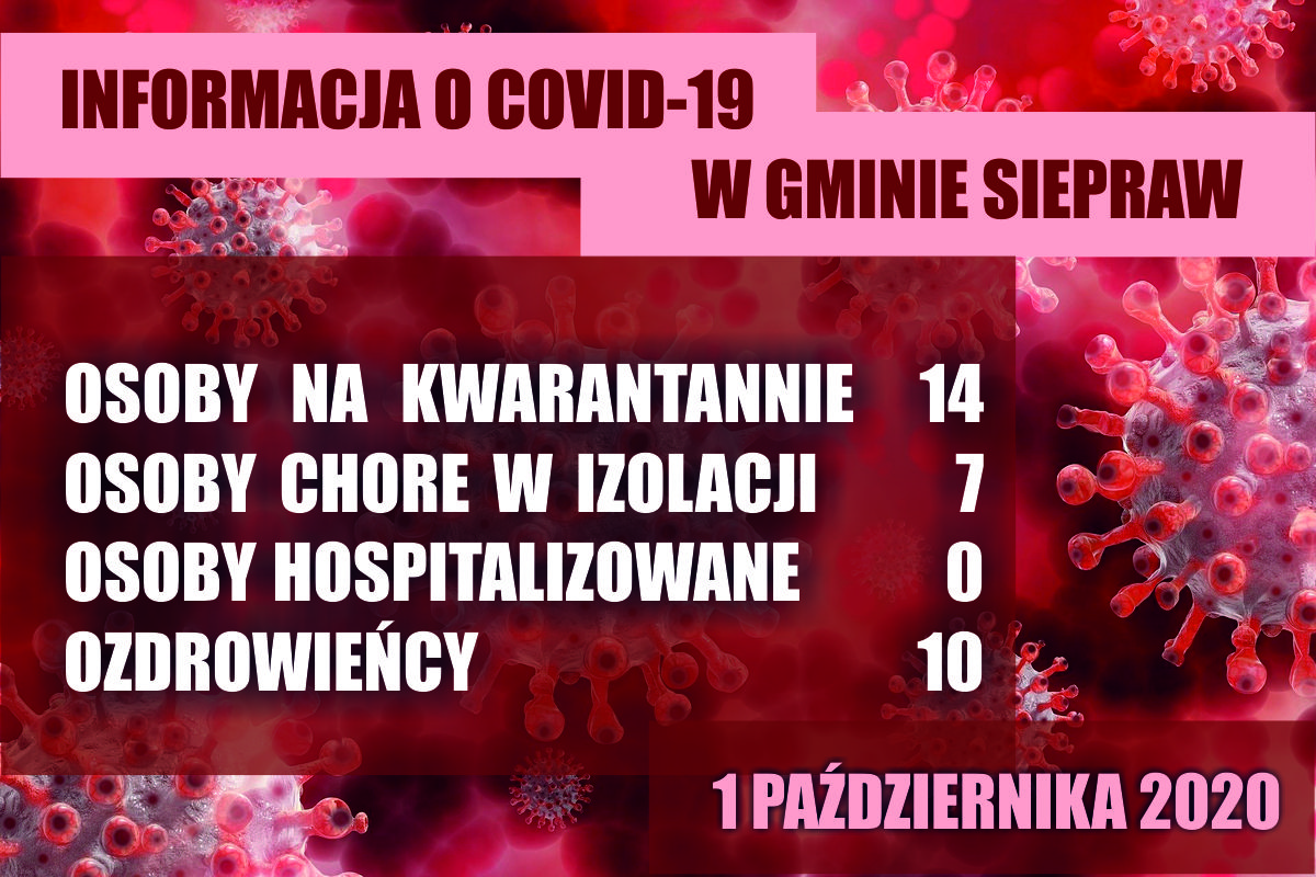 Informacja Państwowego Powiatowego Inspektora Sanitarnego w Myślenicach dotycząca ilości osób przebywających na kwarantannie, w izolacji, hospitalizowanych i ozdrowieńców z dnia 1 października 2020 r.