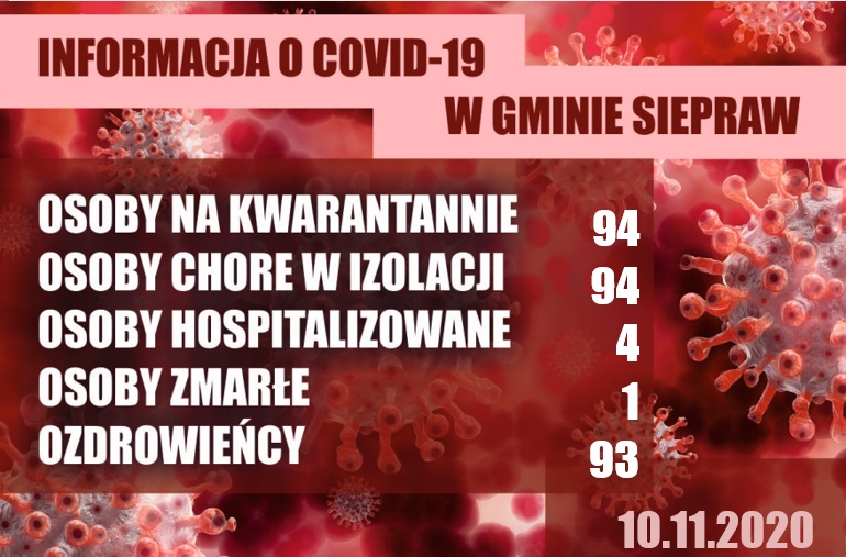 Informacja Państwowego Powiatowego Inspektora Sanitarnego w Myślenicach dotycząca ilości osób przebywających na kwarantannie, w izolacji, hospitalizowanych i ozdrowieńców w dniu 10 listopada 2020 r.
