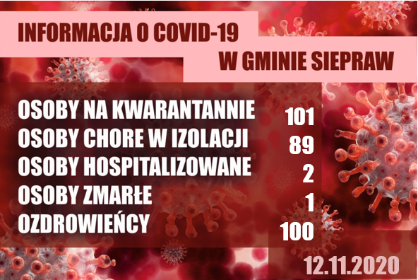 Informacja Państwowego Powiatowego Inspektora Sanitarnego w Myślenicach dotycząca ilości osób przebywających na kwarantannie, w izolacji, hospitalizowanych i ozdrowieńców w dniu 12 listopada 2020 r.