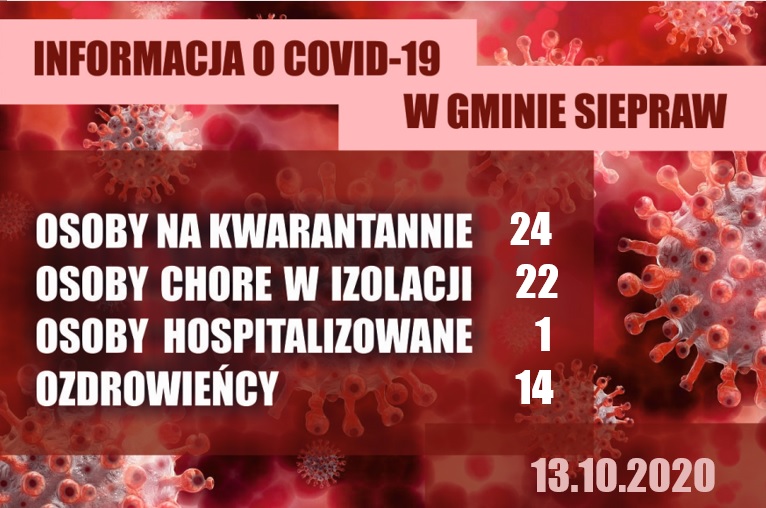 Informacja Państwowego Powiatowego Inspektora Sanitarnego w Myślenicach dotycząca ilości osób przebywających na kwarantannie, w izolacji, hospitalizowanych i ozdrowieńców w dniu 13 października 2020 r.