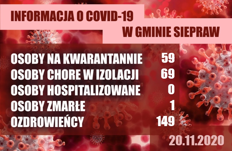 Informacja Państwowego Powiatowego Inspektora Sanitarnego w Myślenicach dotycząca ilości osób przebywających na kwarantannie, w izolacji, hospitalizowanych i ozdrowieńców w dniu 20 listopada 2020 r.