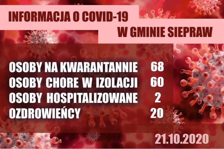 Informacja Państwowego Powiatowego Inspektora Sanitarnego w Myślenicach dotycząca ilości osób przebywających na kwarantannie, w izolacji, hospitalizowanych i ozdrowieńców w dniu 21 października 2020 r.