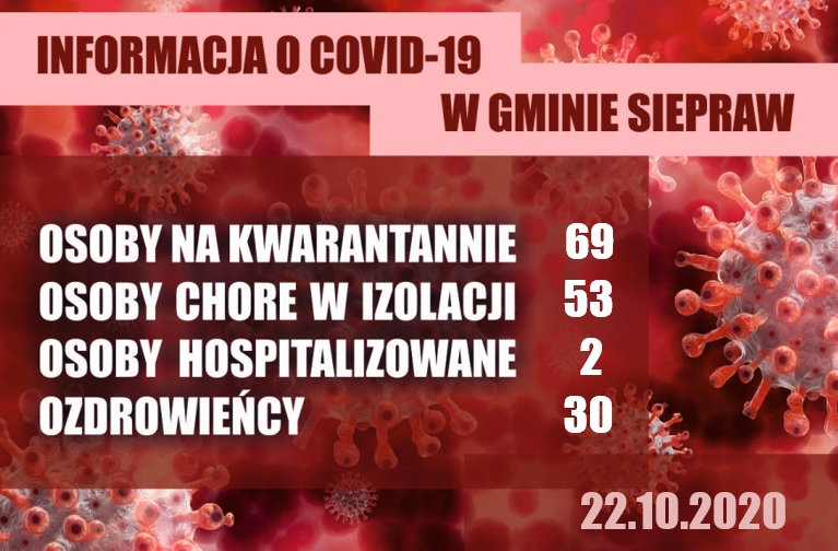 Informacja Państwowego Powiatowego Inspektora Sanitarnego w Myślenicach dotycząca ilości osób przebywających na kwarantannie, w izolacji, hospitalizowanych i ozdrowieńców w dniu 22 października 2020 r.