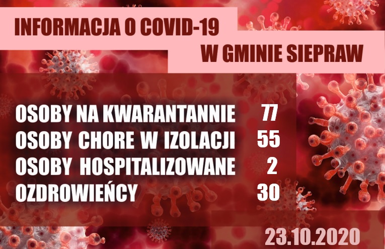 Informacja Państwowego Powiatowego Inspektora Sanitarnego w Myślenicach dotycząca ilości osób przebywających na kwarantannie, w izolacji, hospitalizowanych i ozdrowieńców w dniu 23 października 2020 r.