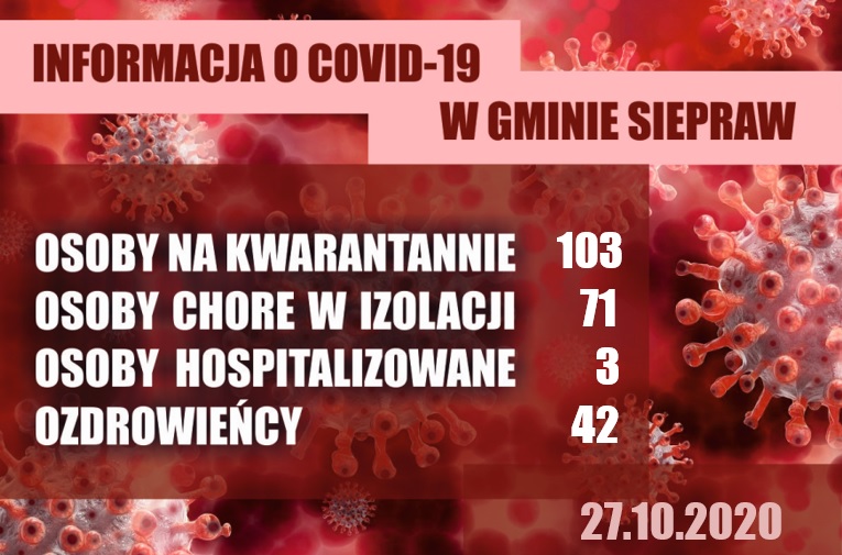 Informacja Państwowego Powiatowego Inspektora Sanitarnego w Myślenicach dotycząca ilości osób przebywających na kwarantannie, w izolacji, hospitalizowanych i ozdrowieńców w dniu 27 października 2020 r.