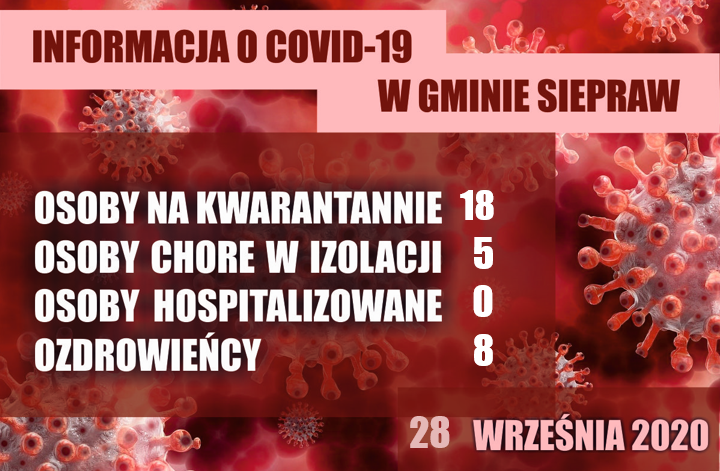 Informacja Państwowego Powiatowego Inspektora Sanitarnego w Myślenicach dotycząca ilości osób przebywających na kwarantannie, w izolacji, hospitalizowanych i ozdrowieńców w dniu 28 września 2020 r.