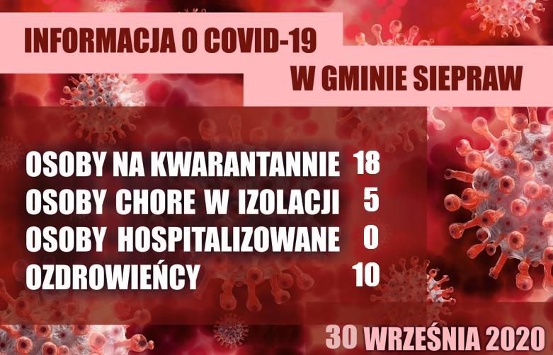 Informacja Państwowego Powiatowego Inspektora Sanitarnego w Myślenicach dotycząca ilości osób przebywających na kwarantannie, w izolacji, hospitalizowanych i ozdrowieńców w dniu 30 września 2020 r.