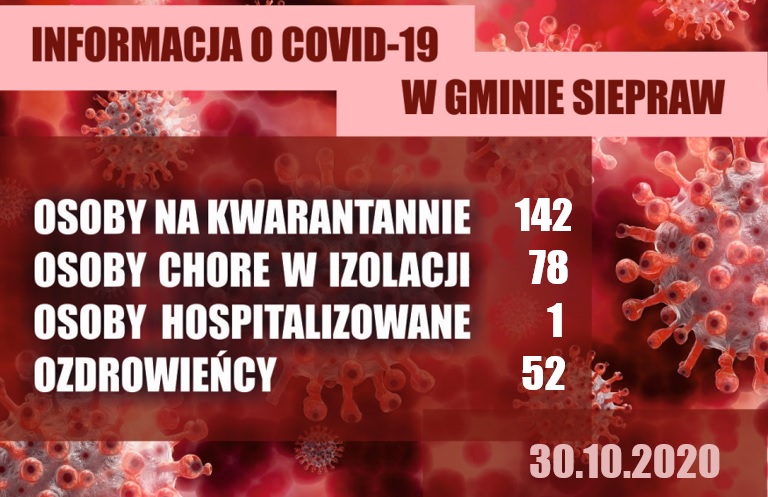 Informacja Państwowego Powiatowego Inspektora Sanitarnego w Myślenicach dotycząca ilości osób przebywających na kwarantannie, w izolacji, hospitalizowanych i ozdrowieńców w dniu 30 października 2020 r.