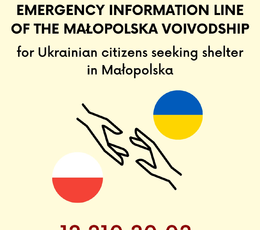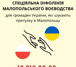 Specjalna Infolinia Wojewody Małopolskiego dla obywateli Ukrainy szukających schronienia w Małopolsce, Infolinia działa 24 h na dobę.