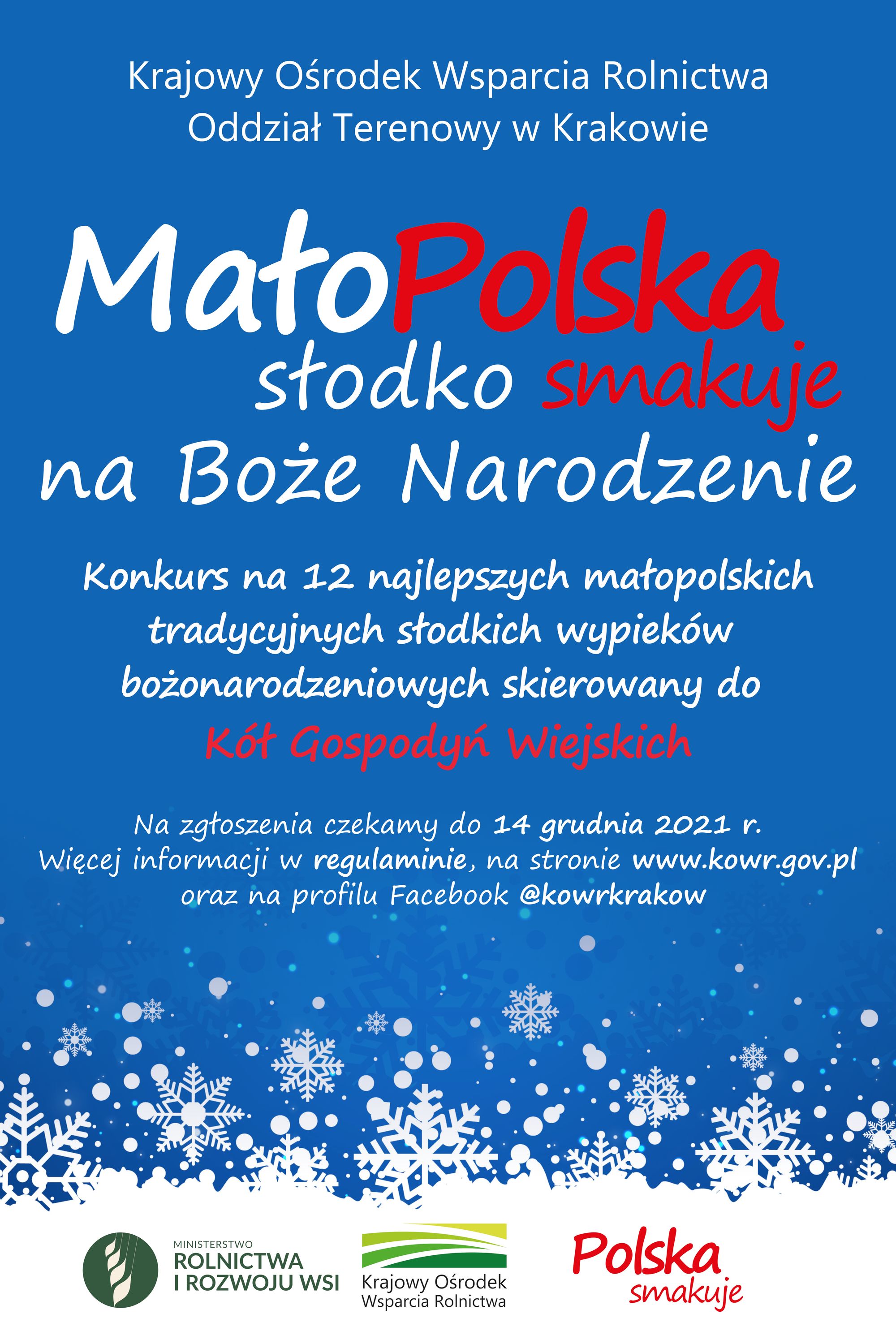 14 grudnia 2021 r. na adres: krakow@kowr.gov.pl podając w tytule maila: KONKURS – „MałoPolska słodko smakuje na Boże Narodzenie”