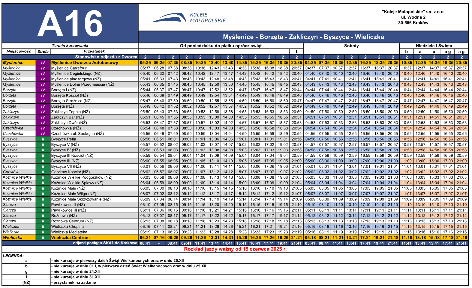 • Nowy rozkład jazdy linii A16 ważny od 15.06.2025 r /
