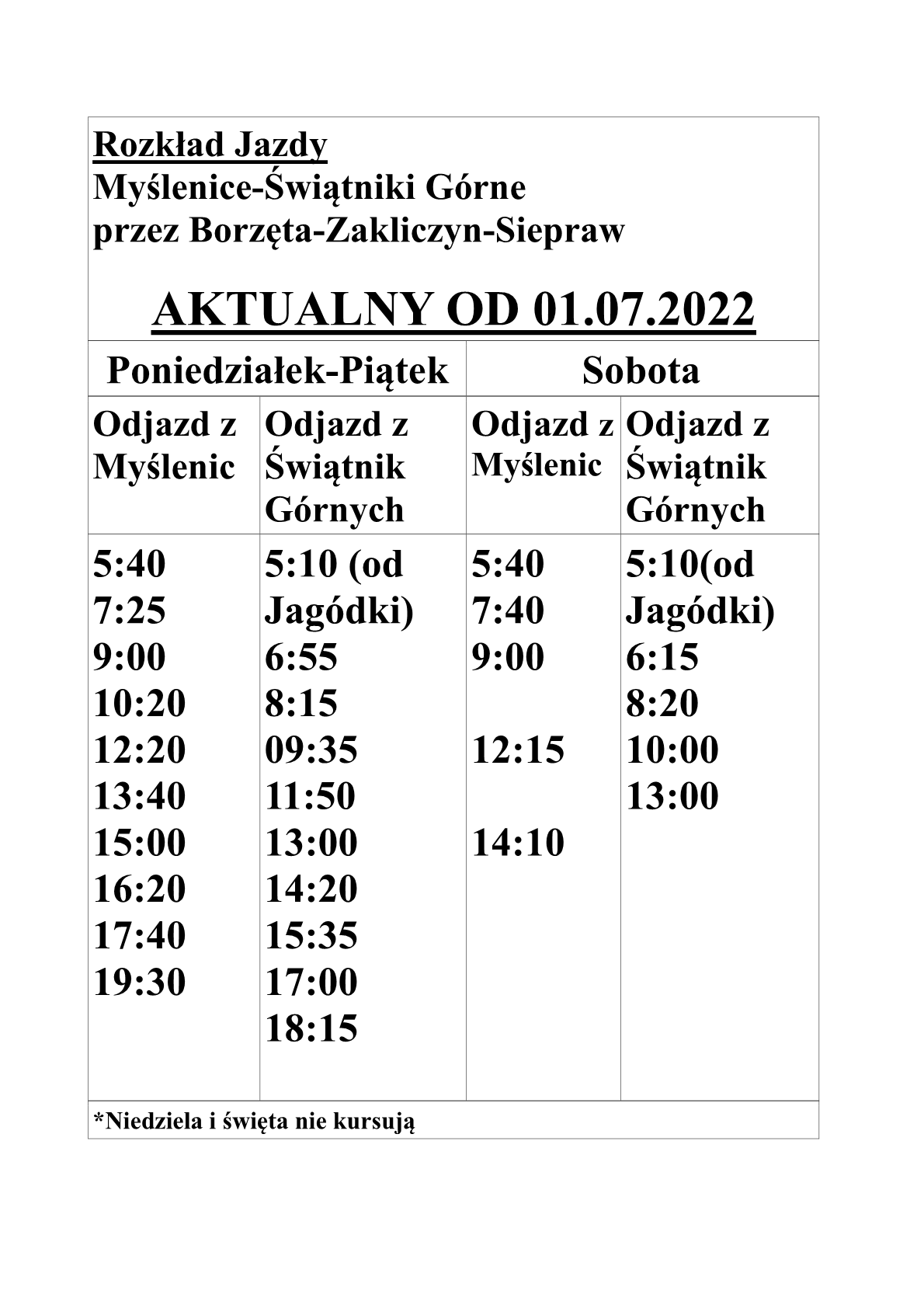 • Nowy rozkład kursów busów od 01.07.2022 r. na tras... /