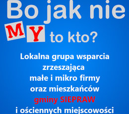 Informujemy, że powstała, wzorem innych wspólnot lokalnych, ciekawa i pożyteczna inicjatywa lokalnych firm na Facebooku: "Bo jak nie MY to kto? Lokalna grupa wsparcia SIEPRAW i okolica".
