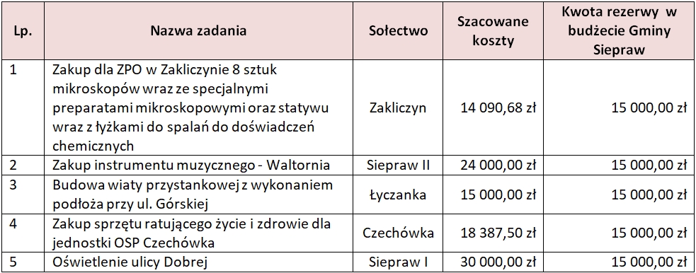 Realizatorem wybranych zadań finansowanych z rezerwy sołeckiej będzie Urząd Gminy Siepraw.