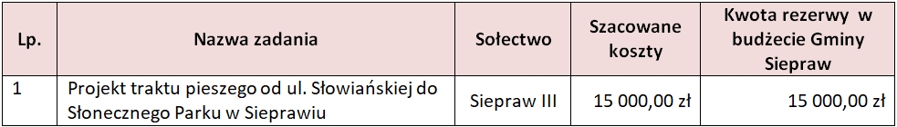 W związku nie zgłoszeniem żadnego zadania w sołectwie Siepraw III Wójt Gminy przeznaczył środki z rezerwy celowej tego sołectwa w 2023 r. na zadanie: