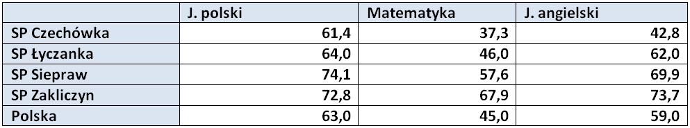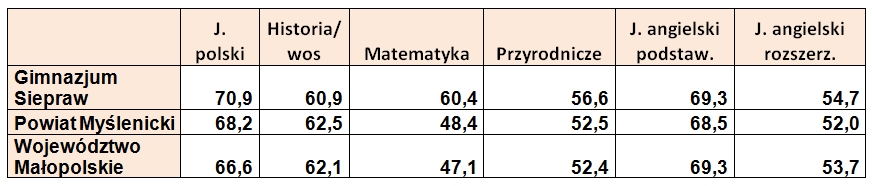 Ostatni już rocznik Gimnazjum w Sieprawiu nie zawiódł i jego wyniki są wyższe niż te uzyskane w powiecie i województwie.