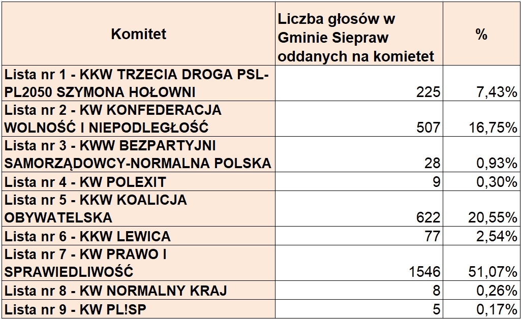 KONFEDERACJA WOLNOŚĆ I NIEPODLEGŁOŚĆ - 507 głosów. Szczegółowe