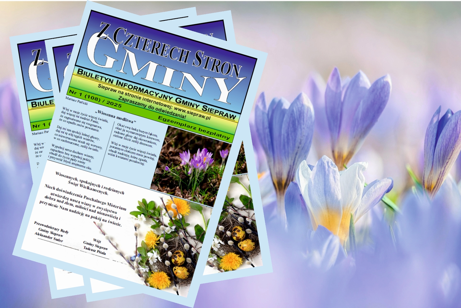 Zapraszamy do zapoznania się z najnowszym wydaniem Biuletynu Informacyjnego "Z Czterech Stron Gminy" Nr 1 (108) z 2025 roku: