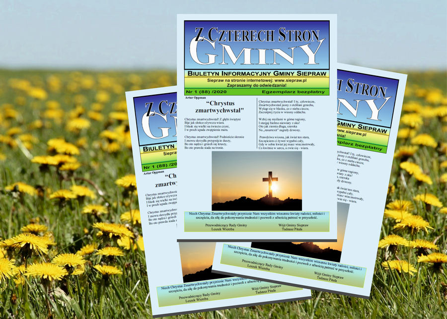 Zapraszamy do zapoznania się z najnowszym wydaniem Biuletynu Informacyjnego "Z Czterech Stron Gminy" Nr 1 (88) z 2020 roku.