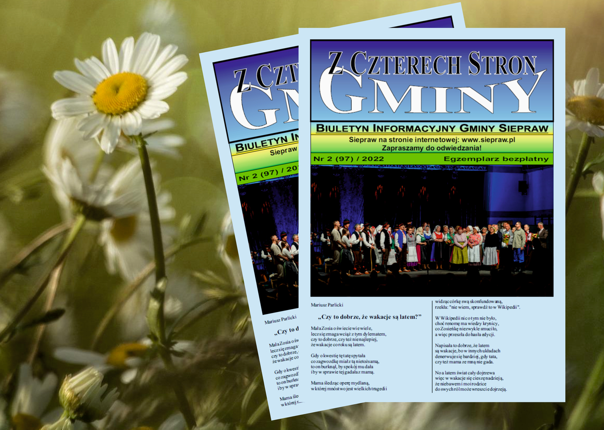 Zapraszamy do zapoznania się z najnowszym wydaniem Biuletynu Informacyjnego "Z Czterech Stron Gminy" Nr 2 (97) z 2022 roku.