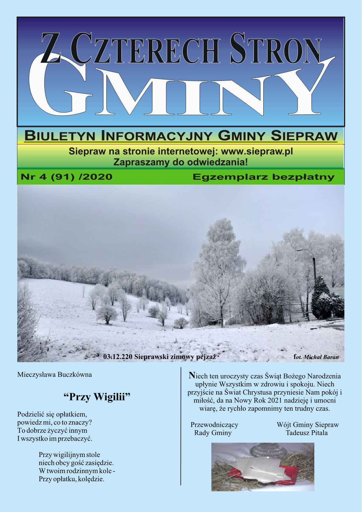 Zapraszamy do zapoznania się z najnowszym wydaniem Biuletynu Informacyjnego "Z Czterech Stron Gminy" Nr 4 (91) z 2020 roku.