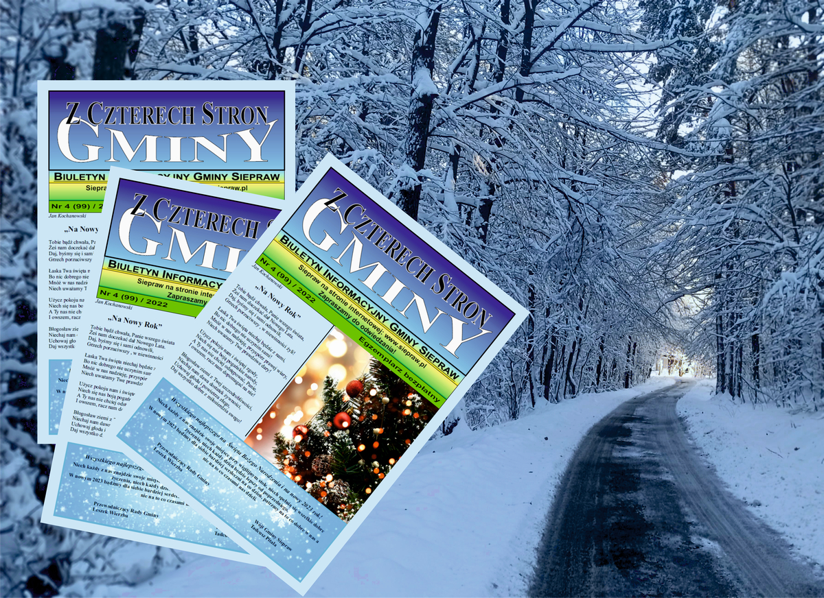 Zapraszamy do zapoznania się z najnowszym wydaniem Biuletynu Informacyjnego "Z Czterech Stron Gminy" Nr 4 (99) z 2022 roku.