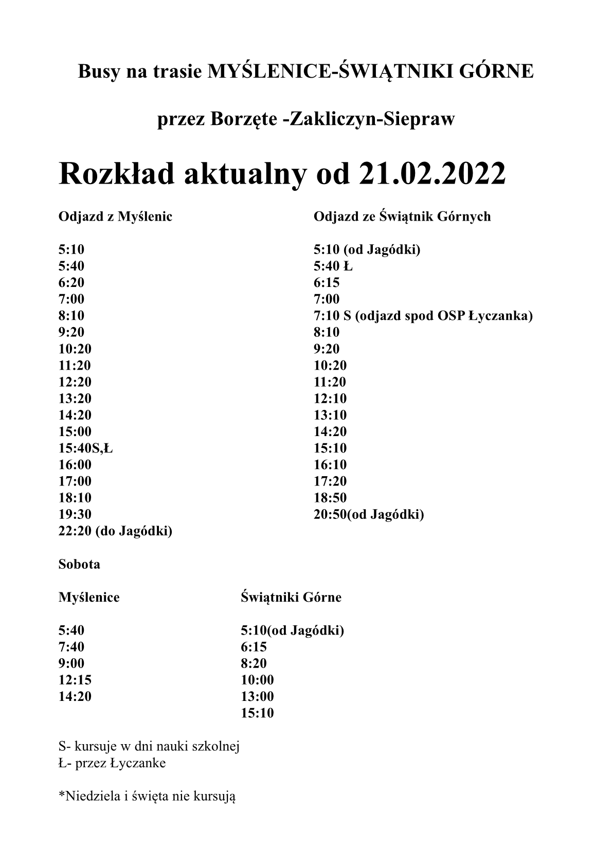 Zmiana kursowania busów na trasie Myślenice - Świątnik Górne od 21.02.2022