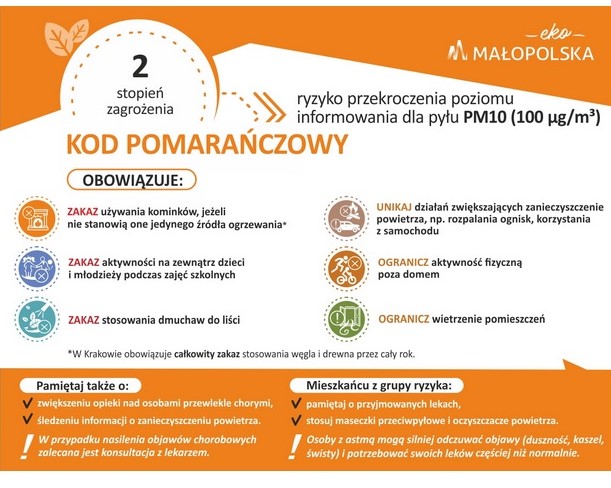 Ostrzeżenie 2 stopnia o zanieczyszczeniu powietrza dla powiatu myślenickiego