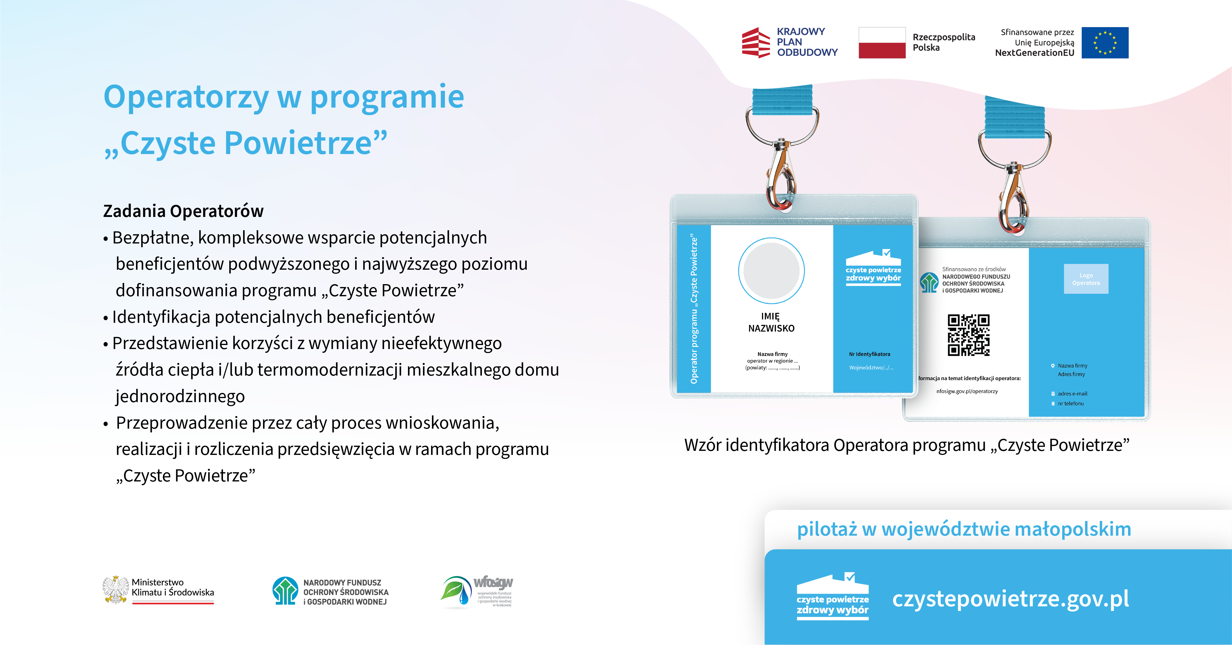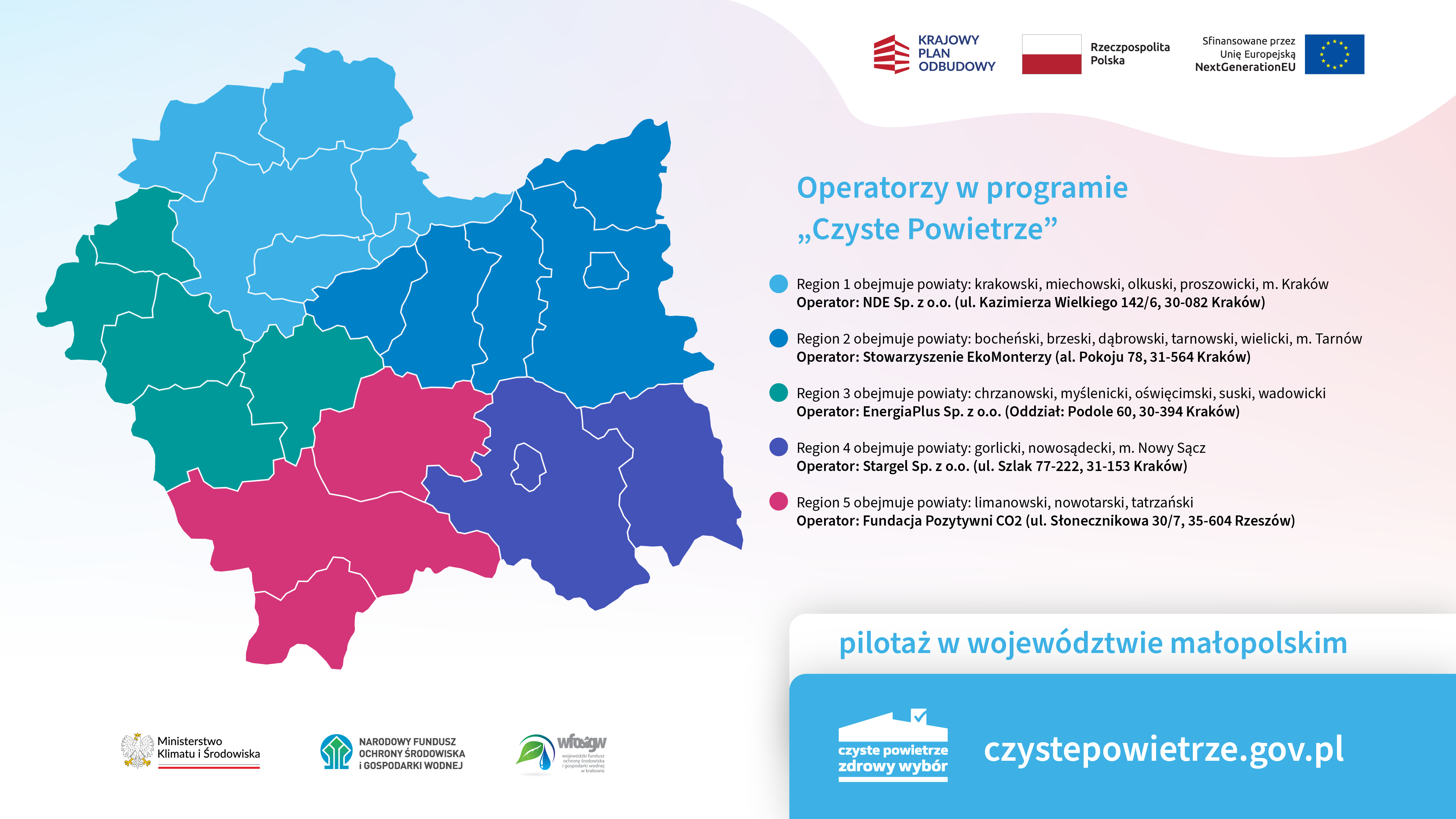 Narodowy Fundusz Ochrony Środowiska i Gospodarki Wodnej uruchomił w województwie małopolskim pierwszy w Polsce pilotaż dotyczący udziału Operatorów przy uzyskaniu dotacji z Programu „Czyste Powietrze”.