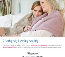 W 2020 roku uprawnienia do skorzystania z bezpłatnej mammografii nabywają Panie z rocznika 1970. Zapraszamy je gorąco do rejestracji na badania i zachęcamy do ich regularnego przeprowadzania. Tylko systematyczność w przestrzeganiu terminów kolejnych badań mammograficznych pozwala na wykrycie potencjalnego zagrożenia na bardzo wczesnym etapie rozwoju choroby.