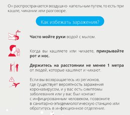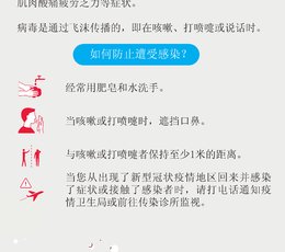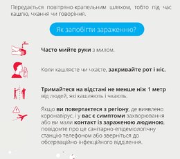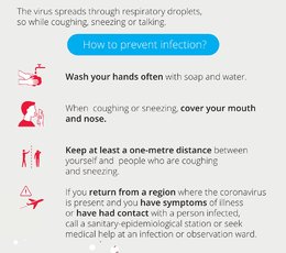 Wirus przenosi się drogą kropelkową. Aktualnie nie ma szczepionki przeciw nowemu koronawirusowi. Można natomiast stosować inne metody zapobiegania zakażeniu, zaprezentowane poniżej w ulotce informacyjnej. Metody te stosuje się również w przypadku zapobiegania innym chorobom przenoszonym drogą kropelkową np. grypie sezonowej (w przypadku której, szczyt zachorowań przypada w okresie od stycznia do marca każdego roku).