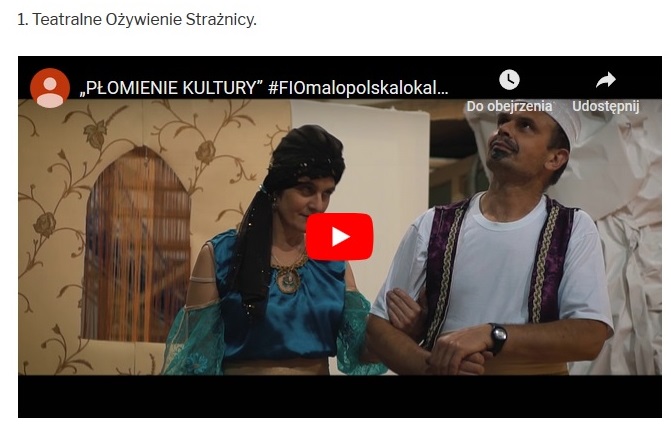 Jak głosować – bezpośrednio na stronie: http://www.malopolskalokalnie.org.pl/ - przewinąć do końca tam jest lista, odznaczyć w kwadraciku przy poz. 1. Teatralne Ożywienie Strażnicy – i kliknąć głosuj w oknie „VOTE”