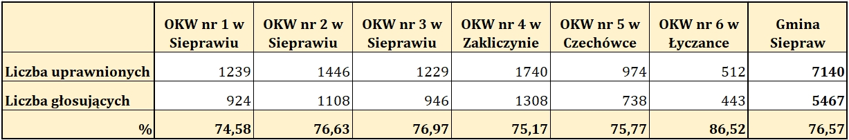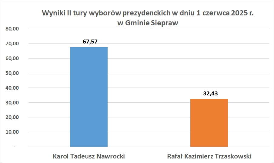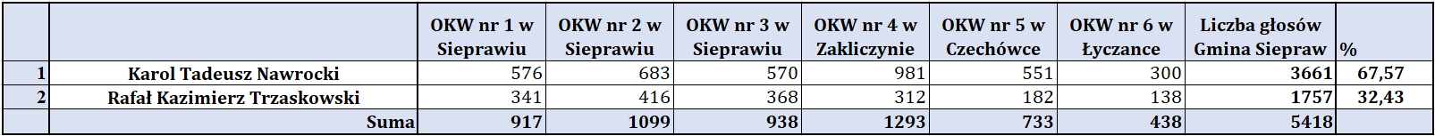 Wyniki II tury wyborów prezydenckich w dniu 1 czerwca 2025 r. na terenie Gminy Siepraw w poszczególnych komisjach obwodowych: