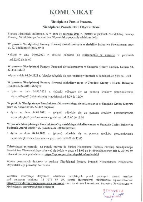 • Komunikat - Nieodpłatna Pomoc Prawna /