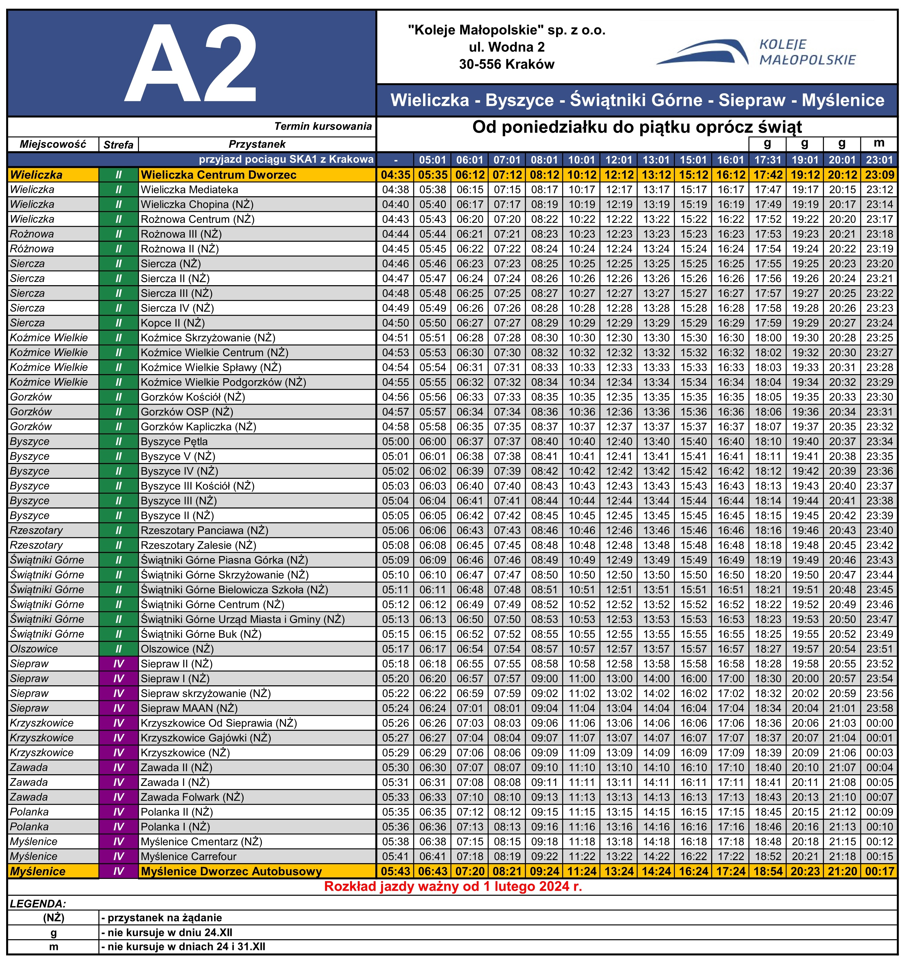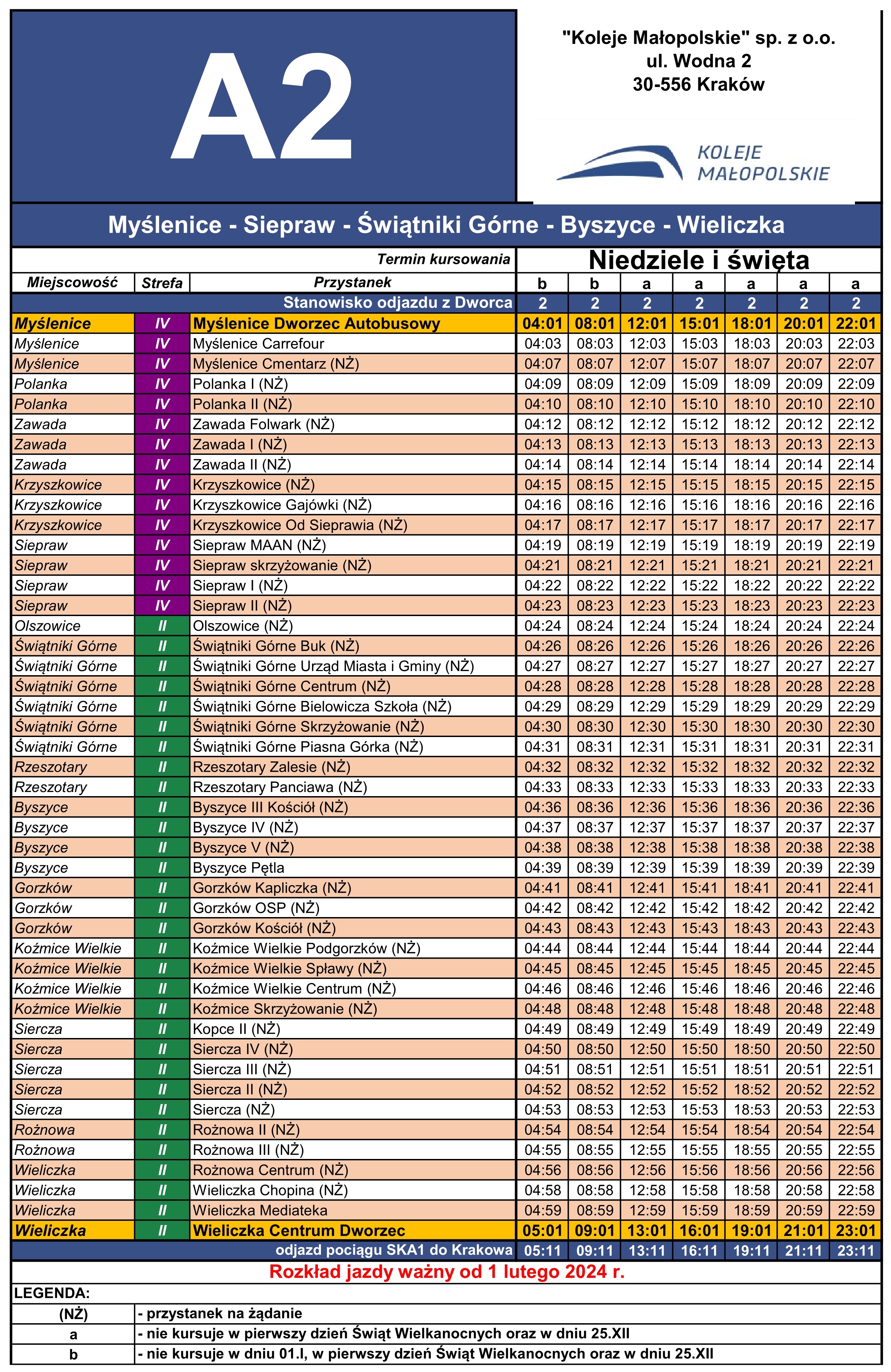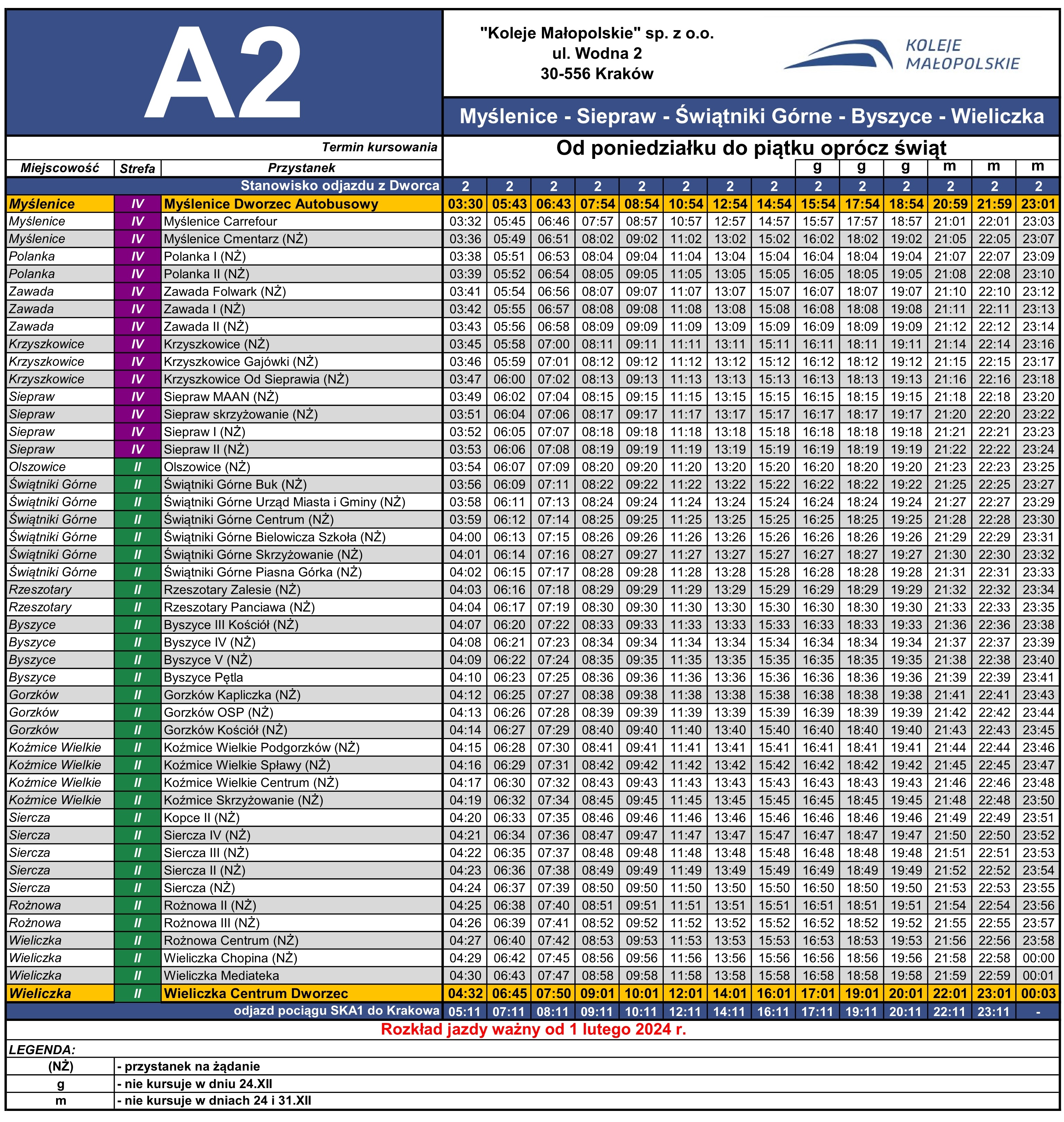 Z przystanku Siepraw Królewska będzie możliwy przejazd do Świątnik Górnych dla osób zainteresowanych dostaniem się np. do Zespołu Szkół w Świątnikach Górnych (ul. Bielowicza), gdzie busy będą miały miejsce parkingowe. Bus nie będzie zatrzymywał się na przystankach na terenie Gminy Świątniki Górne, za wyjątkiem ww. miejsca parkingowego.