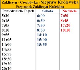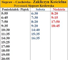 Od 1 stycznia 2025 roku zmieniają się rozkłady jazdy gminnych linii bus S1 Zakliczyn OSP - Łyczanka Woźniczówka oraz S2 Zakliczyn Kościelna - Siepraw Królewska. Prosimy o zapoznanie się z nowymi rozkładami - w plikach pdf można pobrać rozkłady na obowiązujące na każdym z przystanków.