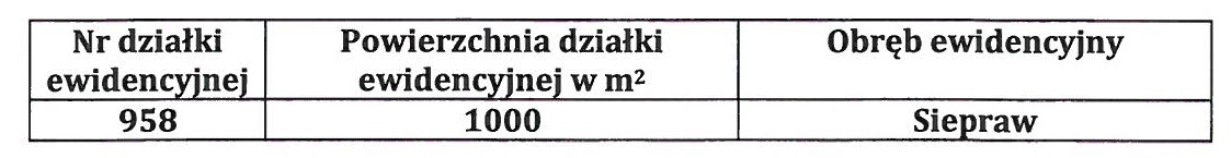 W przypadku braku uwag lub odmownym załatwieniu uwag, po dniu 20 marca 2025r. Wójt Gminy Siepraw wystąpi do Wojewody Małopolskiego w Krakowie o stwierdzenie, iż Gmina Siepraw nabyła własność w/w nieruchomość z mocy prawa w dniu 27 maja 1990 r. na podstawie art. 5 ustawy z dnia 10 maja 1990r. Przepisy wprowadzające ustawę o samorządzie terytorialnym i ustawę o pracownikach samorządowych (Dz.U.90.32.191).