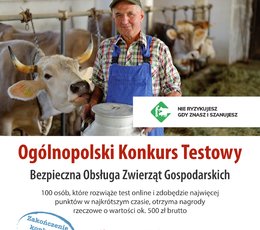 Placówka Terenowa KRUS Myślenice, zaprasza rolników do wzięcia udziału w „Ogólnopolskim konkursie testowym z zakresu bezpiecznej pracy w gospodarstwie rolnym – bezpieczna obsługa zwierząt gospodarskich”. Uczestnikiem Konkursu może być osoba pełnoletnia, podlegająca w dniu rozwiązywania testu ubezpieczeniu społecznemu rolników.