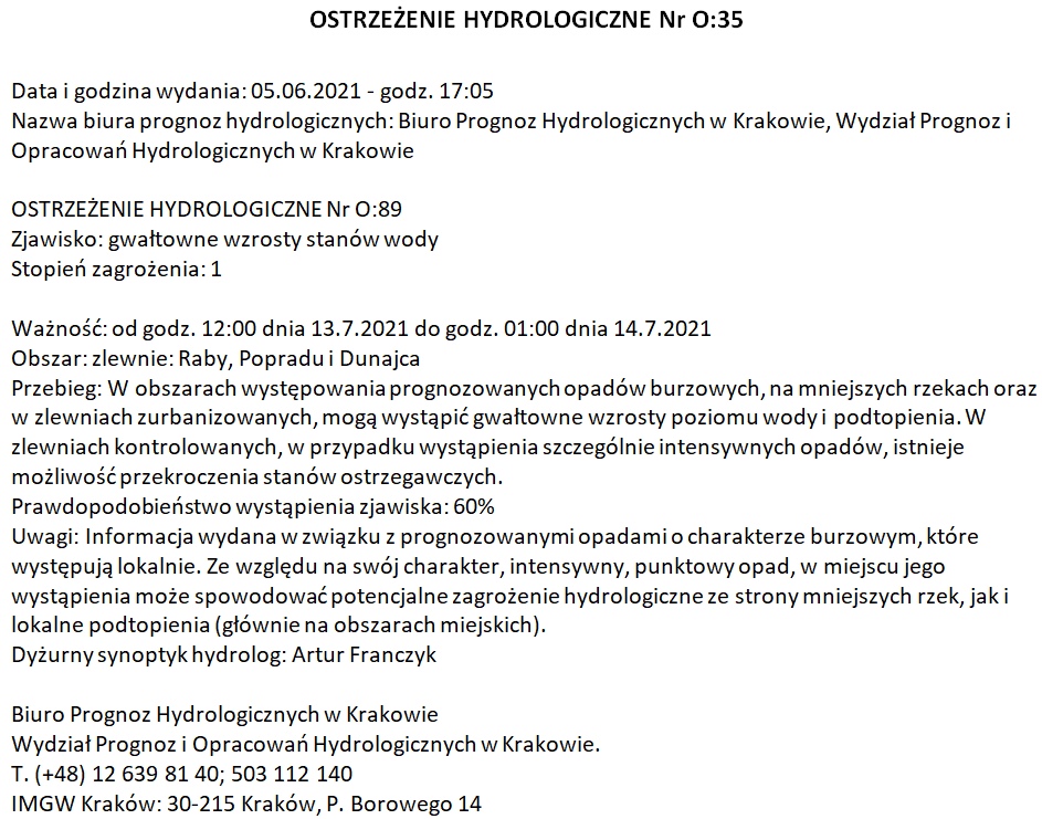 Instytut Meteorologii i Gospodarki Wodnej wydał ostrzeżenie o niebezpiecznych zjawiskach hydrologi...