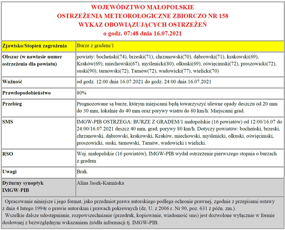 Instytut Meteorologii i Gospodarki Wodnej wydał ostrzeżenie o niebezpiecznych zjawiskach meteorologicznych