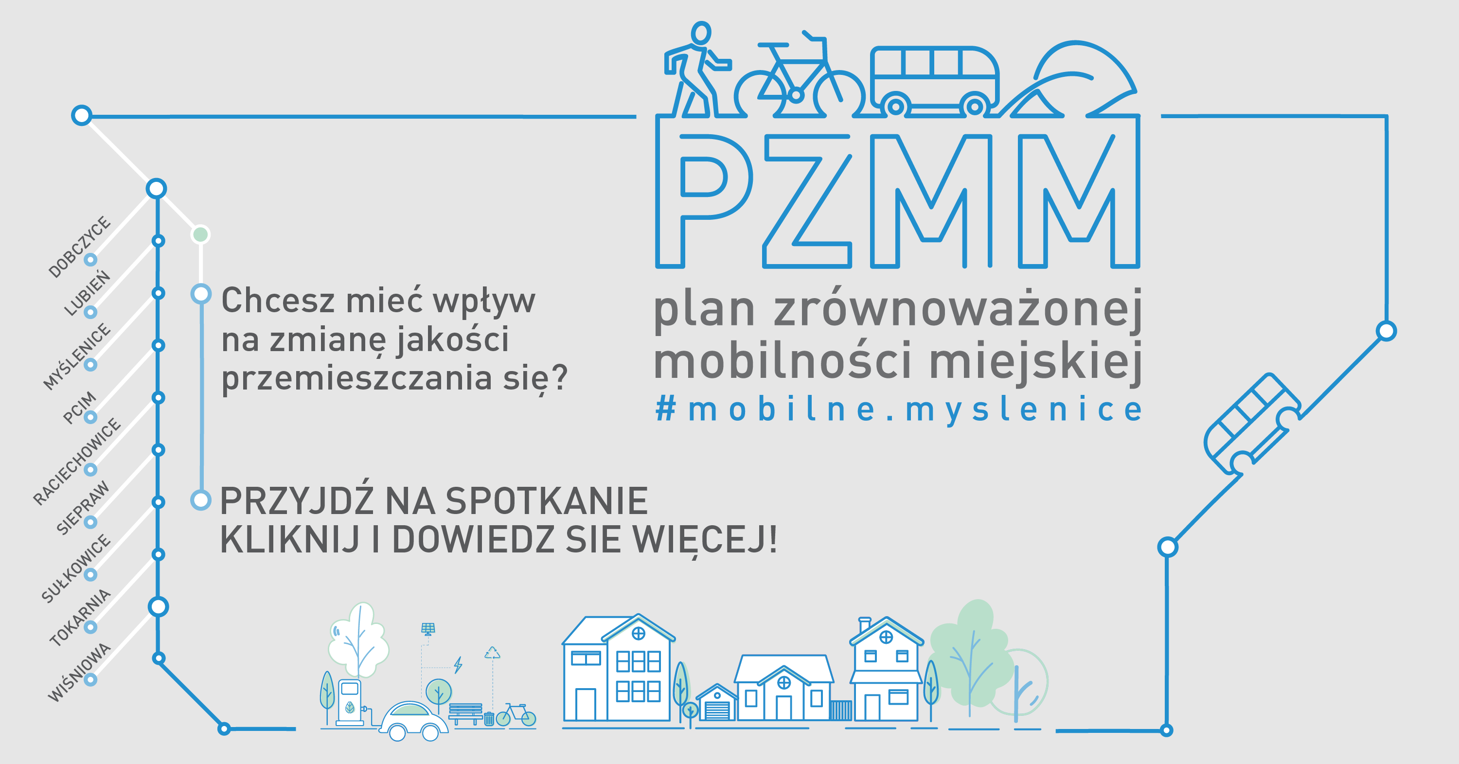 Rozpoczynamy pracę nad stworzeniem Planu Zrównoważonej Mobilności Miejskiej Obszaru Funkcjonalnego Myślenic do roku 2032+. Obszar Funkcjonalny Myślenic obejmuje dziewięć gmin: Dobczyce, Lubień, Myślenice, Pcim, Siepraw, Sułkowice, Raciechowice, Tokarnia, Wiśniowa.