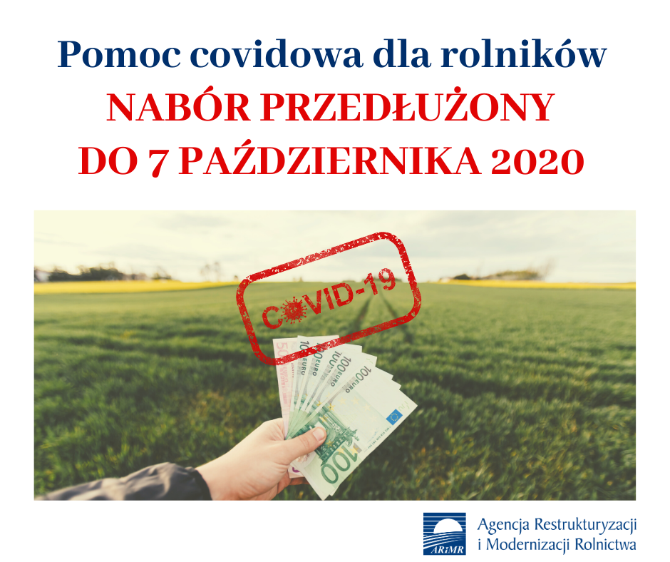 Do 7 października 2020 r., czyli o tydzień dłużej, Agencja Restrukturyzacji i Modernizacji Rolnictwa będzie przyjmowała wnioski o wsparcie od tych rolników, których gospodarstwa zostały szczególnie dotknięte kryzysem COVID-19.