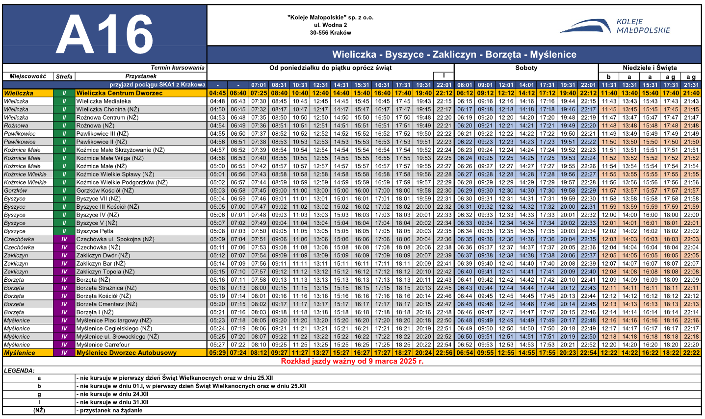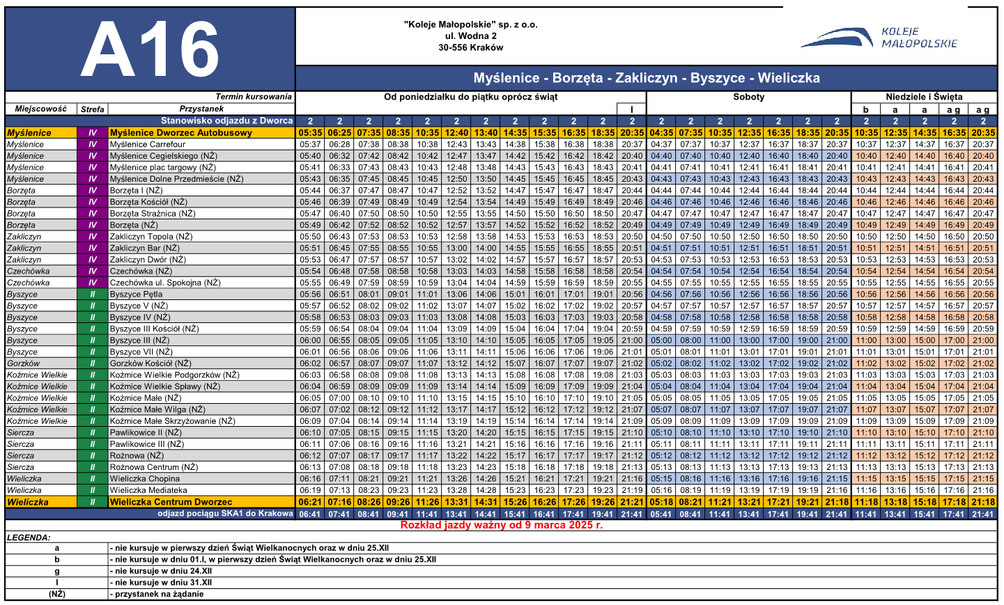 • Rozkład jazdy linii A16 ważny od 09.03.2025 r /